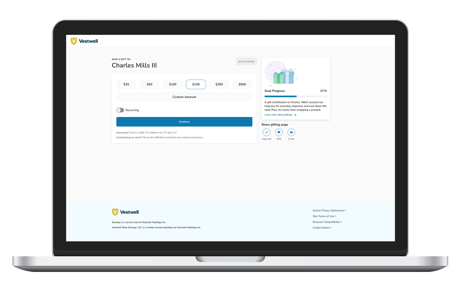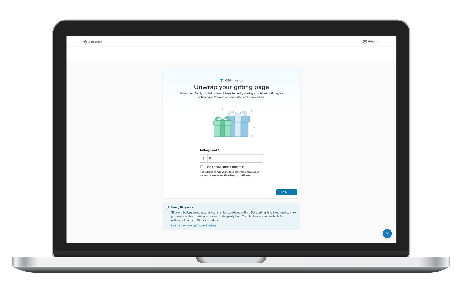 A gifting page is a unique web page that allows your loved ones to easily make contributions directly to your account online. They can simply go to your unique URL and add funds to your account.